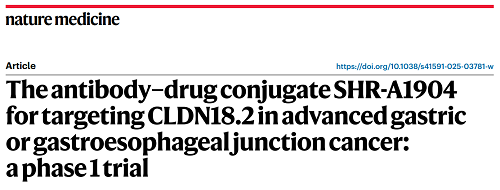 8.Xu, R. H., et al. CLDN18. 2 targeted antibody-drug conjugate (ADC), SHR-A1904, in patients (pts) with gastric/gastroesophageal junction cancer (GC/GEJC): A phase I study." ESMO 2024. Oral presentation, 609O